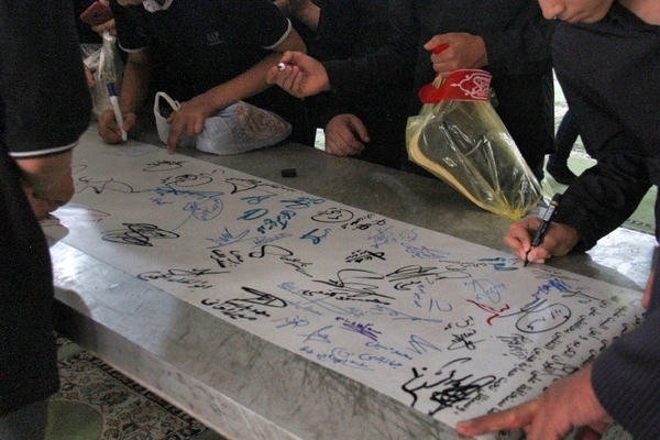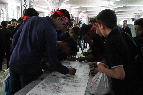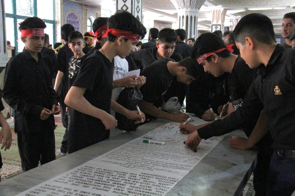 دانشآموزان شهرکردی در جریان برپایی سوگواره «احلی من العسل» در مصلی امام خمینی(ره) این شهر، طومار ۵۰ متری در محکومیت هتک حرمت قرآن کریم در سوئد را امضا کردند؛ این طومار برای نمایش در مقابل سفارت سوئد به تهران ارسال میشود که تودهنی نوجوانان شهرکردی به این اقدام شنیع و توهینآمیز است.