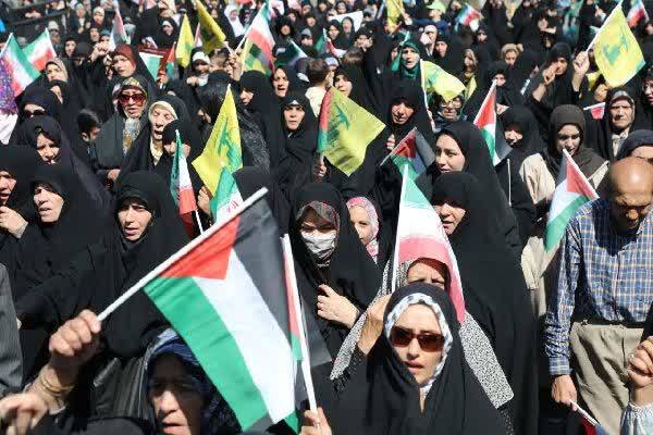 راهپیمایان با مشتهای گره کرده شعارهای «مرگ بر اسرائیل» و «مرگ بر آمریکا» سر دادند.